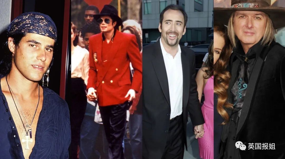 △四位丈夫从左到右依次是:音乐制作人Danny Keough;天王迈克尔·杰克逊;影帝尼古拉斯凯奇;音乐制作人Michael Lockwood。