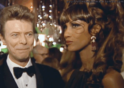 伊曼刚一到场就吸引了所有人的目光,她带着灿烂的笑容和大卫鲍伊对视了一眼,空气中好像有什么爆炸了似的,大卫对她一见钟情。