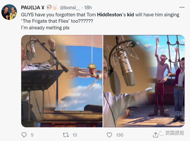 “抖森的孩子还可以让他唱《小叮当与海盗仙子》的主题曲《The Frigate That Flies 》啊!想到就已经融化了……”
