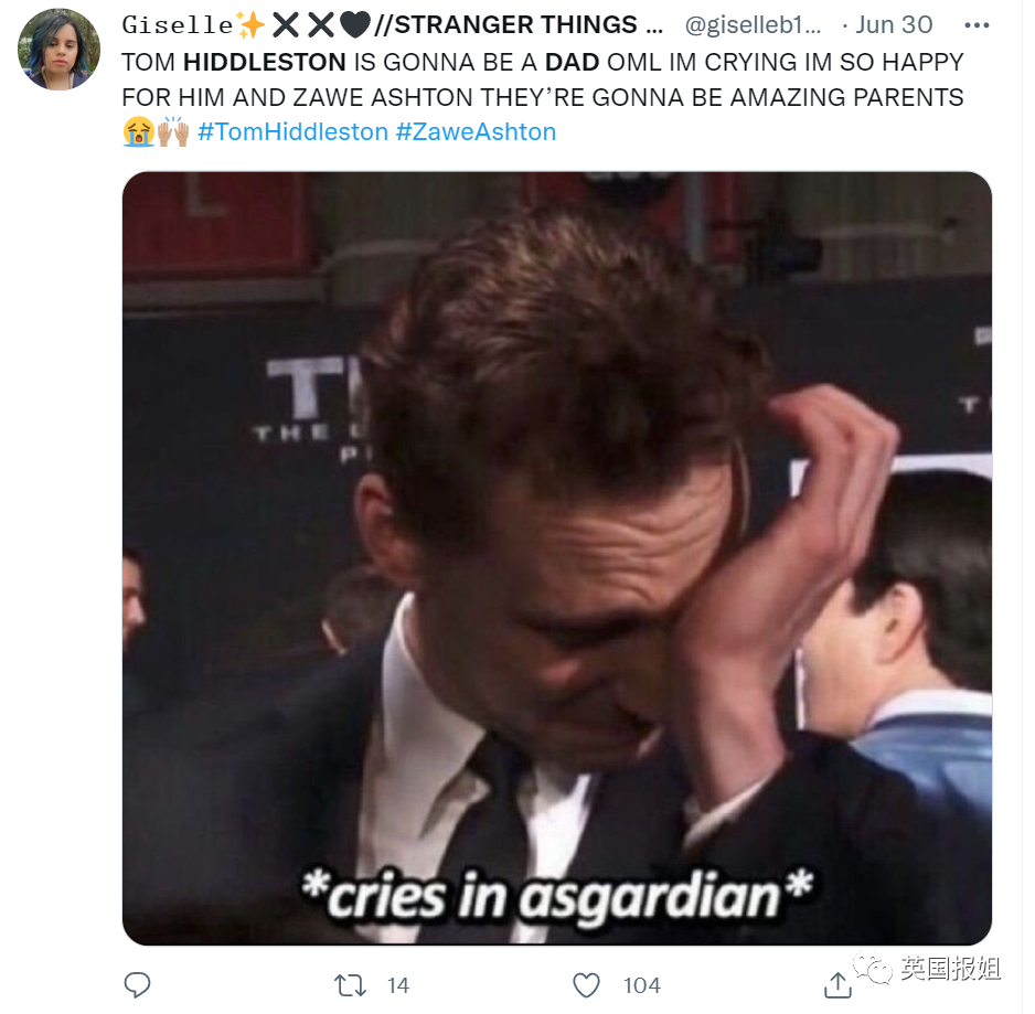 Tom Hiddleston,洛基的饰演者,被誉为全世界最性感的男人……竟然这么快,就要当爹了?
