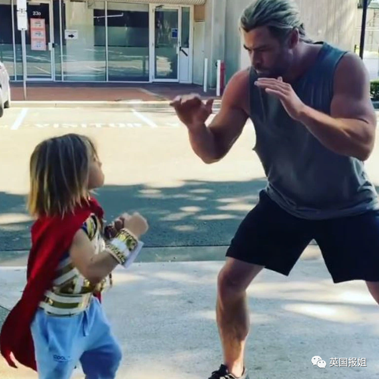 “雷神”带起娃来立刻升级为粗糙的澳洲老爹,谁看了都替娃捏把汗。