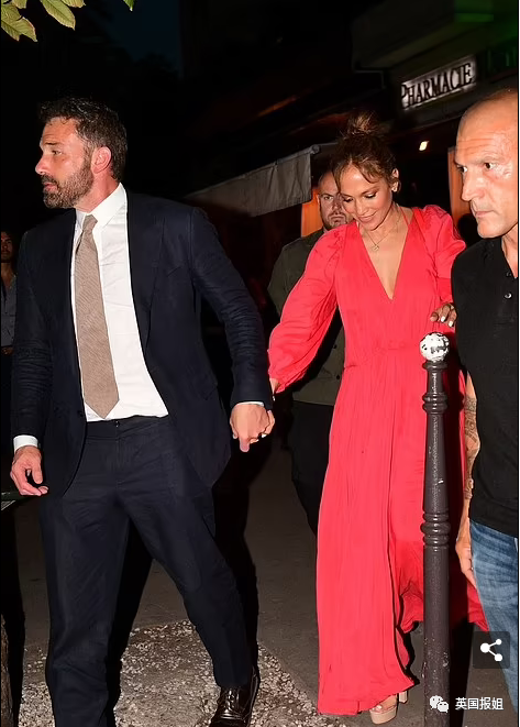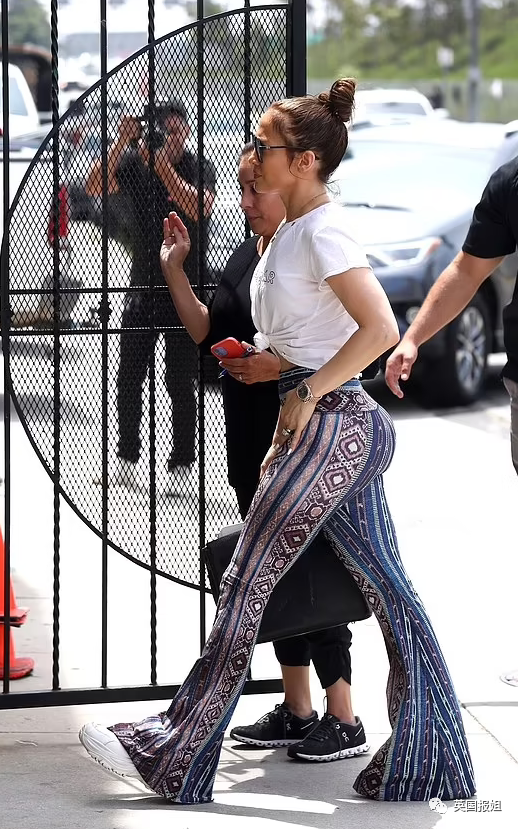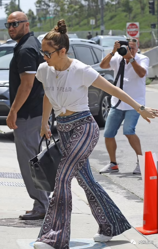 狗仔还给拍了花做前景,妥妥的浪漫爱情电影剧照了,尤其是照片里的JLo,这种日常的状态下,依然美得无懈可击,下颌线太清晰了。