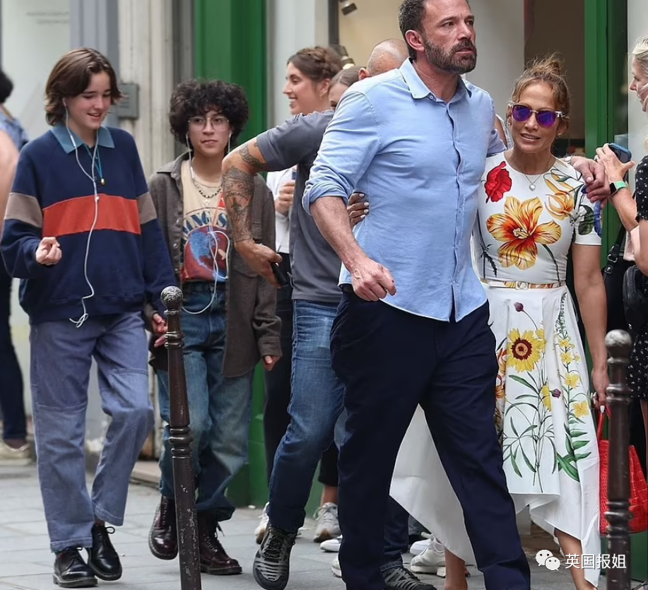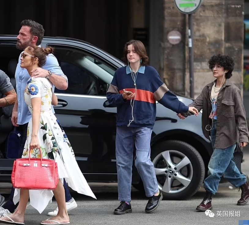 上周六,巴黎下了雨,JLo和大本继续带着孩子出去吃饭。