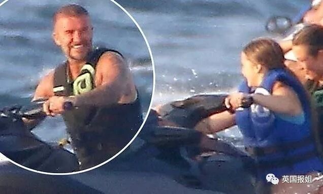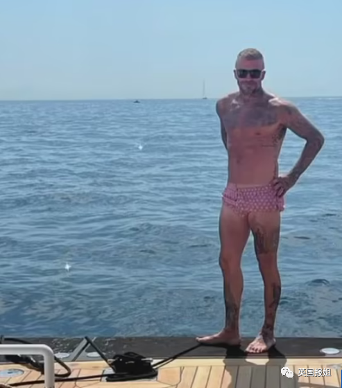47岁的爸爸大卫贝克汉姆也换了不同颜色的泳裤,