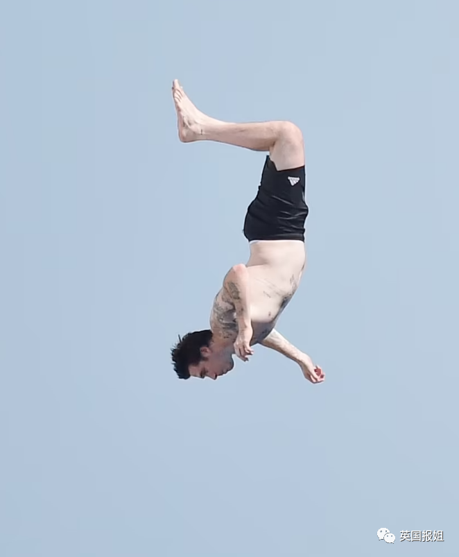 跳水之余,还不忘抽空嘟起嘴,和老婆索吻。