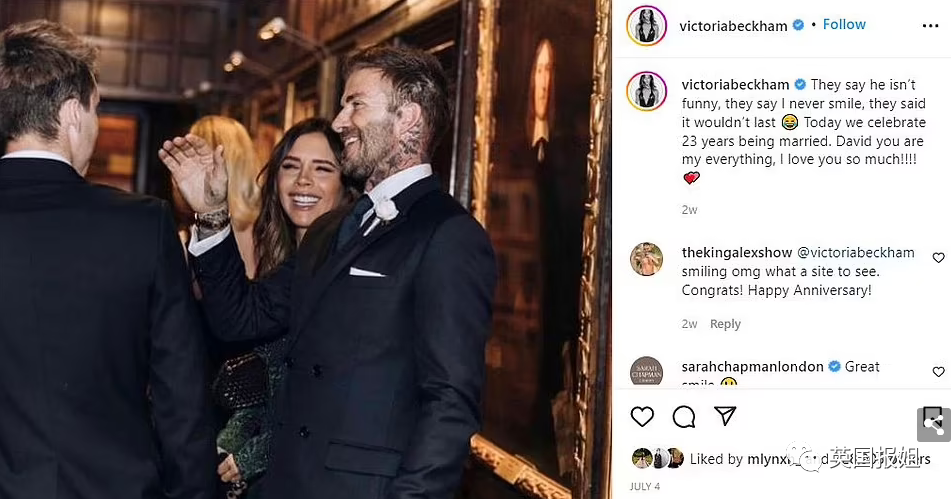 妮古拉也是一样,大卫和维多利亚庆祝结婚纪念日的帖子,她没点赞,