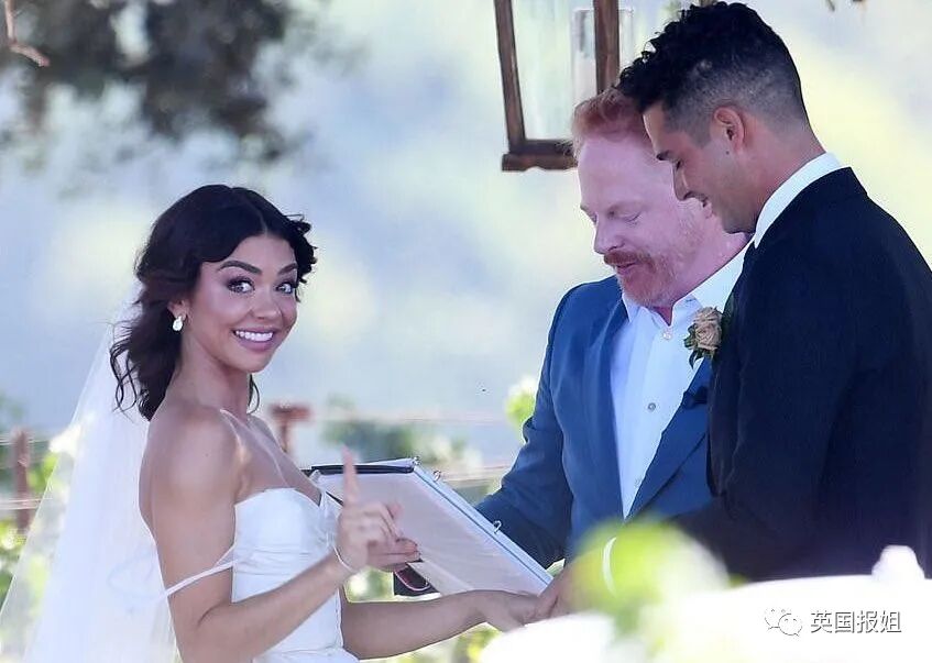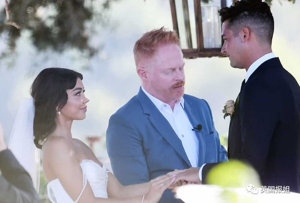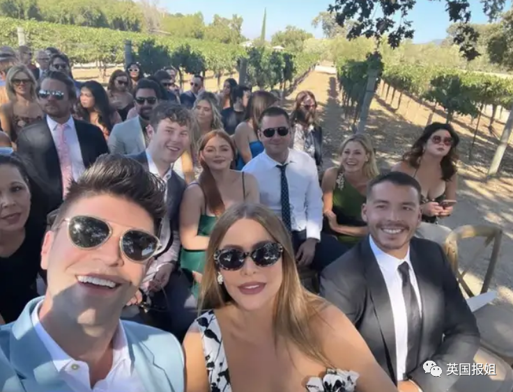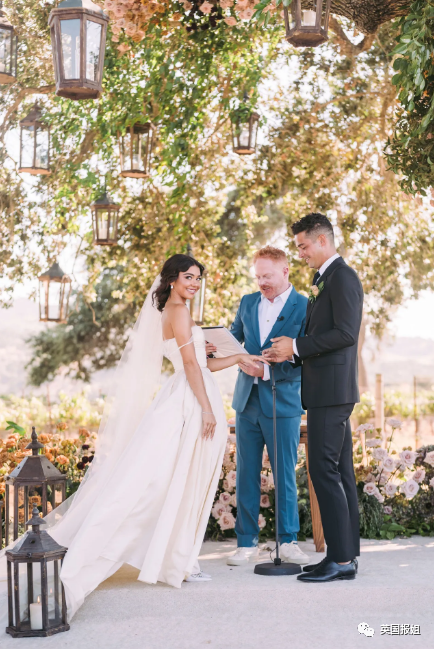 在场的除了两位新人和他们的亲朋以外,还有一群“特殊”的人,那就是《摩登家庭》剧组的演员们。