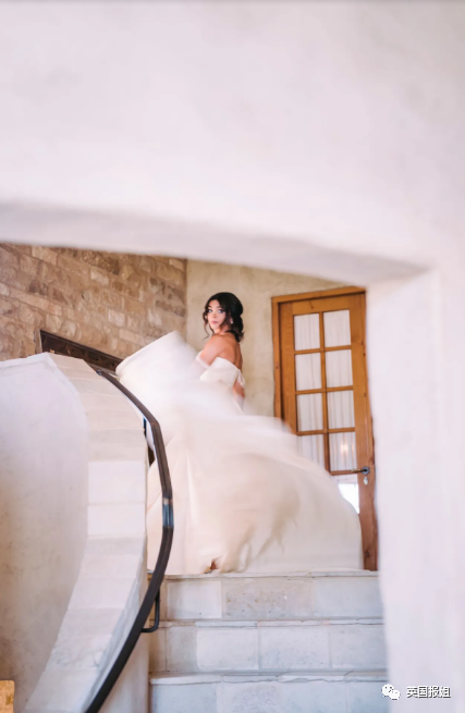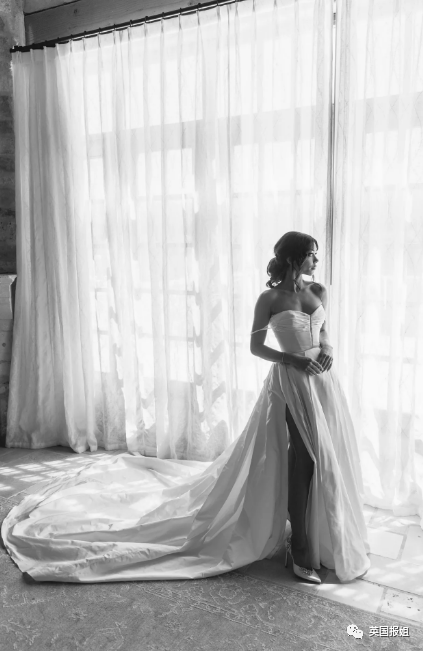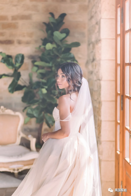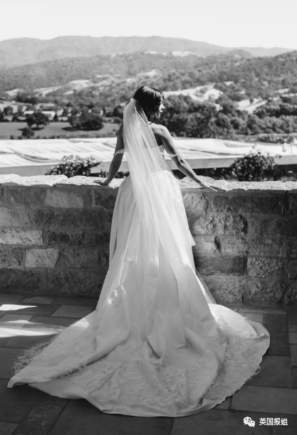象牙色的礼服勾勒出莎拉的窈窕身形,飘逸的超长头纱更是如梦如幻。