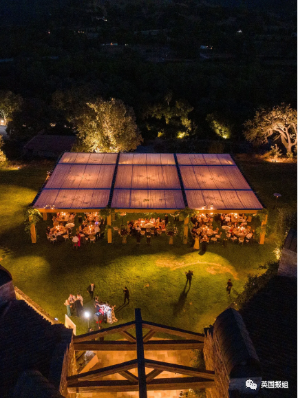 新郎新娘和身边最亲近的一群人,在婚礼前先举行了一场排练晚宴。