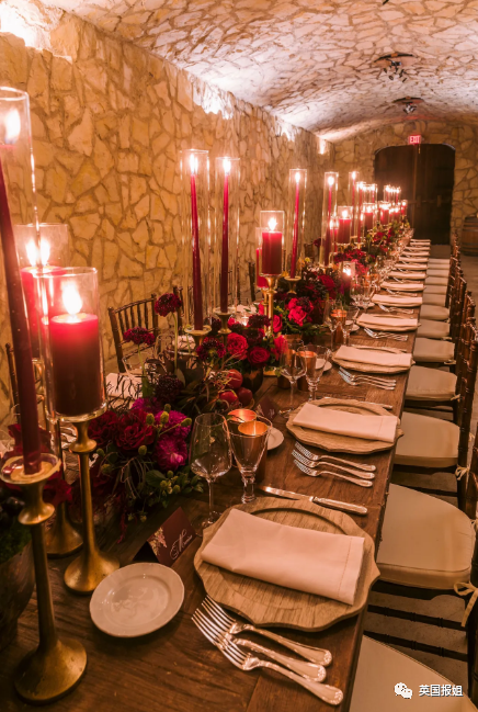 整个晚宴的布置充满古典、优雅、自然的韵味,空气中仿佛还能闻到葡萄酒的芳香。