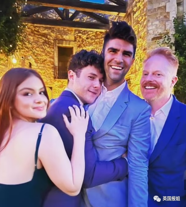 Julie Bowen(饰演妈妈)、Ariel Winter(饰演妹妹)还有Nolan Gould(饰演弟弟),一家三口齐齐出席“大姐”婚礼,给人感觉完全就是《摩登家庭》番外篇!