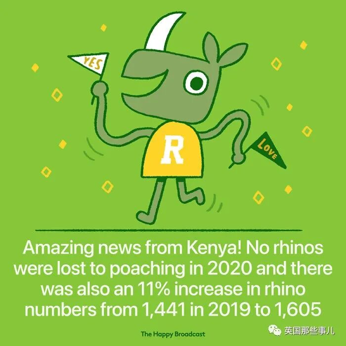 肯尼亚传来的好消息!2020年没有犀牛死于非法狩猎。犀牛的数量从2019年的1441头,增加到1605头,增加了11%。