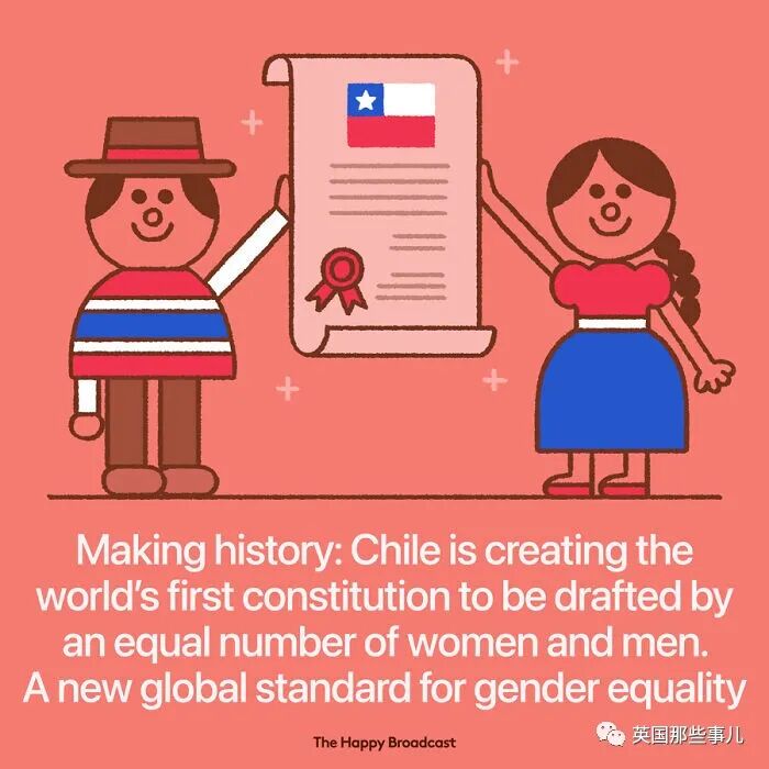 智利正在由同等比例男女代表共同起草新宪法,属全球首例。