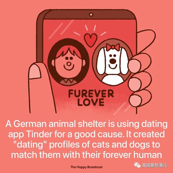 一家德国动物收容所用约会软件Tinder帮小动物找家。他们会为猫咪和狗狗创建一个“交友”简介,让合适的铲屎官更方便地跟它们配对。