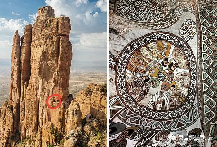 Abuna Yemata Guh是位于埃塞俄比亚提格雷地区的一座巨石教堂。它位于2580米的高处(红圈标出的就是它的入口),必须徒步攀登才能到达。