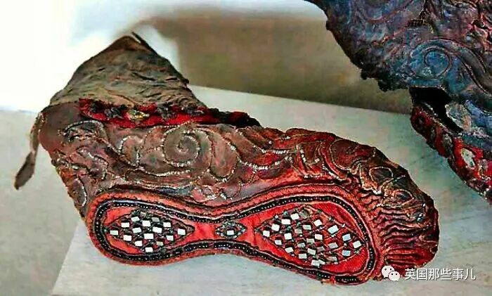 2300年前塞西亚女人的靴子,被保存在阿尔泰山脉的冻土中。