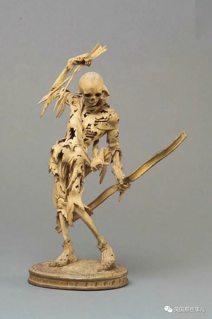 一个持弓的小型死亡雕塑,制作于1520年的德国。