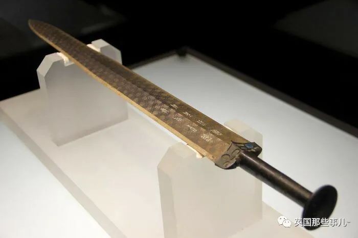 越王勾践剑,发现于1965年。这把剑主要由青铜制成,有蓝色水晶和绿松石装饰。剑身没有生锈和变色,仍然非常锋利。中国湖北,春秋时期(公元前771-403年)。