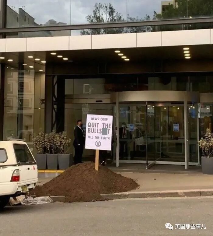 有人在新闻集团悉尼总部的门前,倒了一堆大粪以示抗议。
