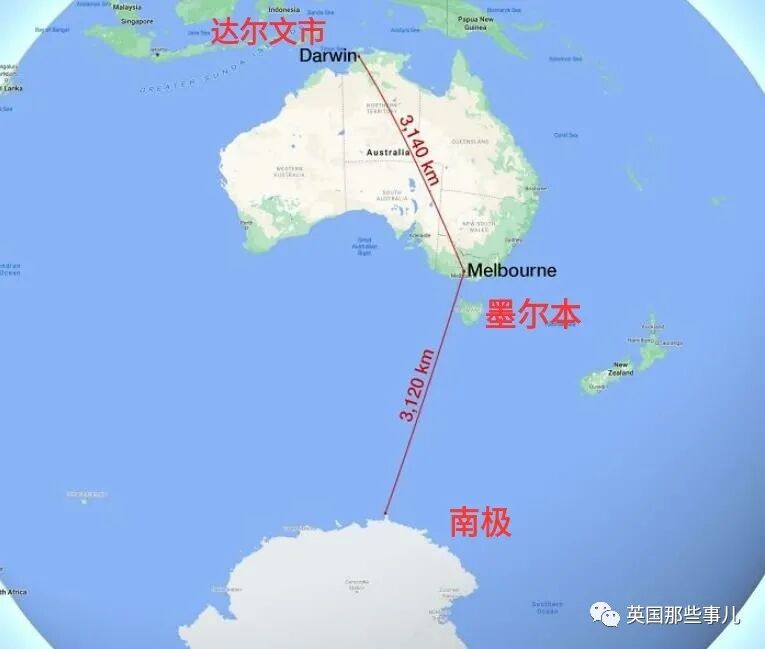 墨尔本跟南极之间的距离,其实比墨尔本到达尔文市还要近。