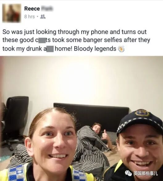 我看手机时发现了好东西,警察把喝得烂醉的我送回家,顺便拿我的手机拍了张合影。