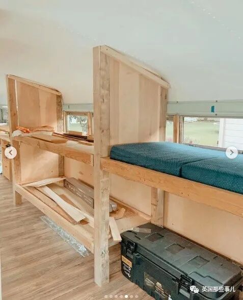 然后再装上书架,摆上一些绿植和小艺术品,给整个房车家的气息。