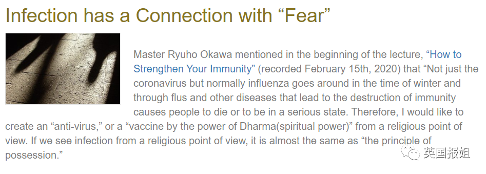 日本一个宗教最近也搞起了这一套,完全是拙劣的“名场面复刻”现场。他们是这么宣传的:我们面对新冠疫情也不要害怕,只要精神力足够强大,就能打败病毒!