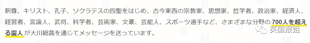 「霊言」是个啥?作为言灵能力者,大川能从“另一个世界”召来灵魂附身在自己身上,这些灵魂有的来自于依然活着的人,有的是天使或者历史上的伟人,有的则是来自于外星人。