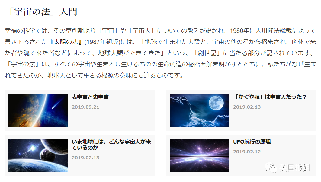 与此同时,幸福科学教的领域也在不断扩展,从幸福生活鸡汤,到宇宙运行法则,真的兑现了自己宗教的名字:“幸福”+“科学”,全面发展一个也不能落下。