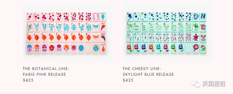 两年前,当凯特第一次接触到麻将时,她很快就被“哗啦啦”的洗牌声以及它“复杂的战略性”所吸引。但是呢,她觉得传统麻将无法反映出自己的个人风格,她想要一套独特的,能让她“自豪”地带去和朋友一起玩的麻将。