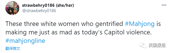 我对这三个白人妇女把麻将变得更高端这件事的愤怒程度,跟今天国会大厦的暴力行为一毛一样。