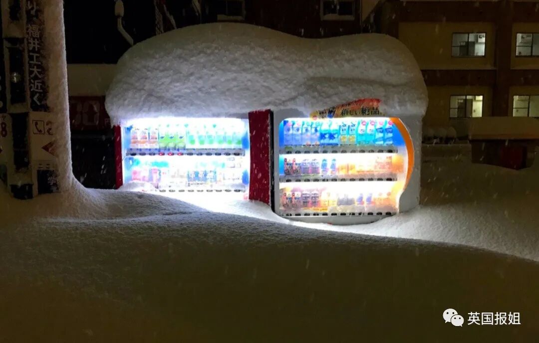 自动贩卖机下半部分被完全覆盖,矮矮的像是童话里的小房子。