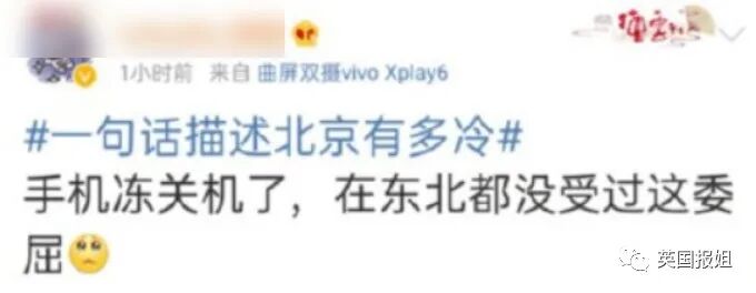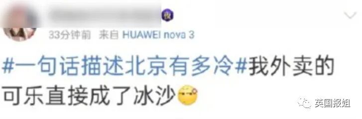 还有网友表示“唇釉能给冻成唇泥”、“爱豆打电话约我出门我给拒绝了”、“想到好笑的事情也不能笑,因为害怕口水成冰”...