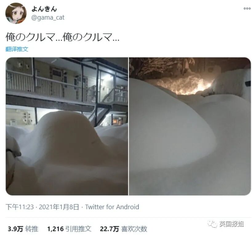 寒潮下的日本开启了大雪模式,东北部地区积雪量预计会达到之前同期的2~4倍。