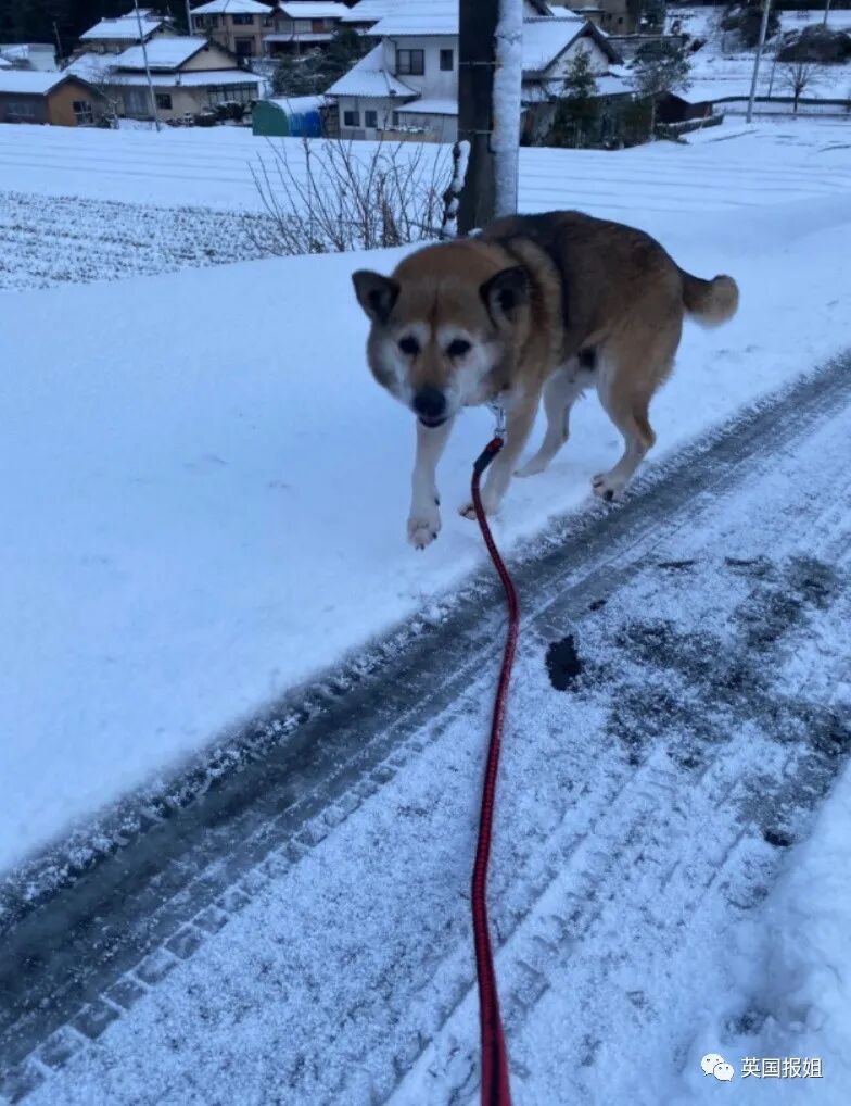 吵着要出门散步的狗子,被冻到一脸“这么冷你还要带我出来简直太过分”的表情。
