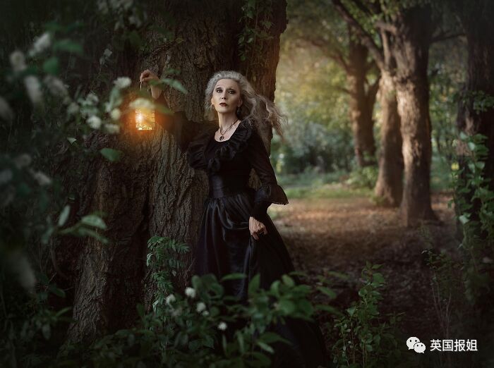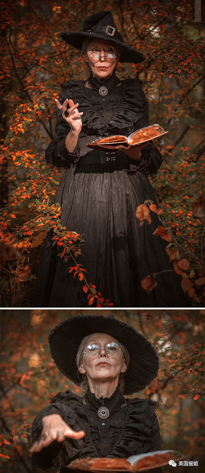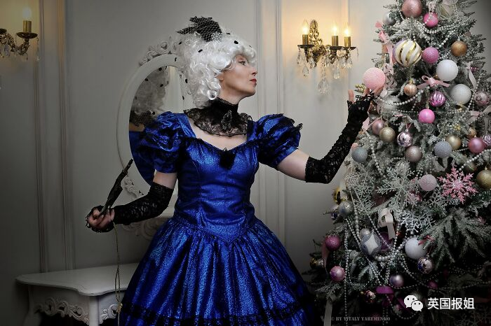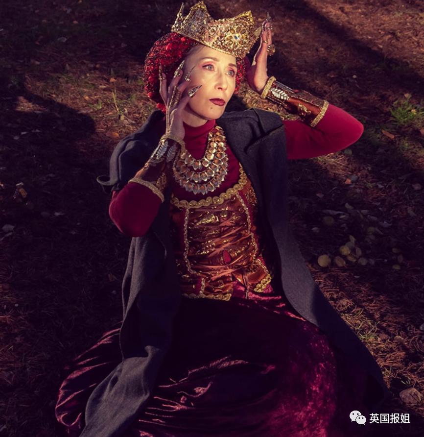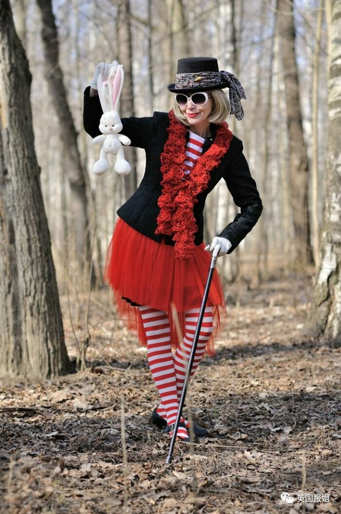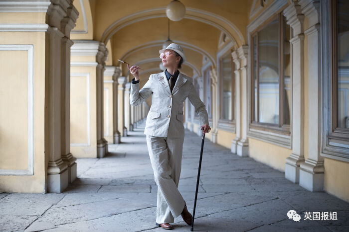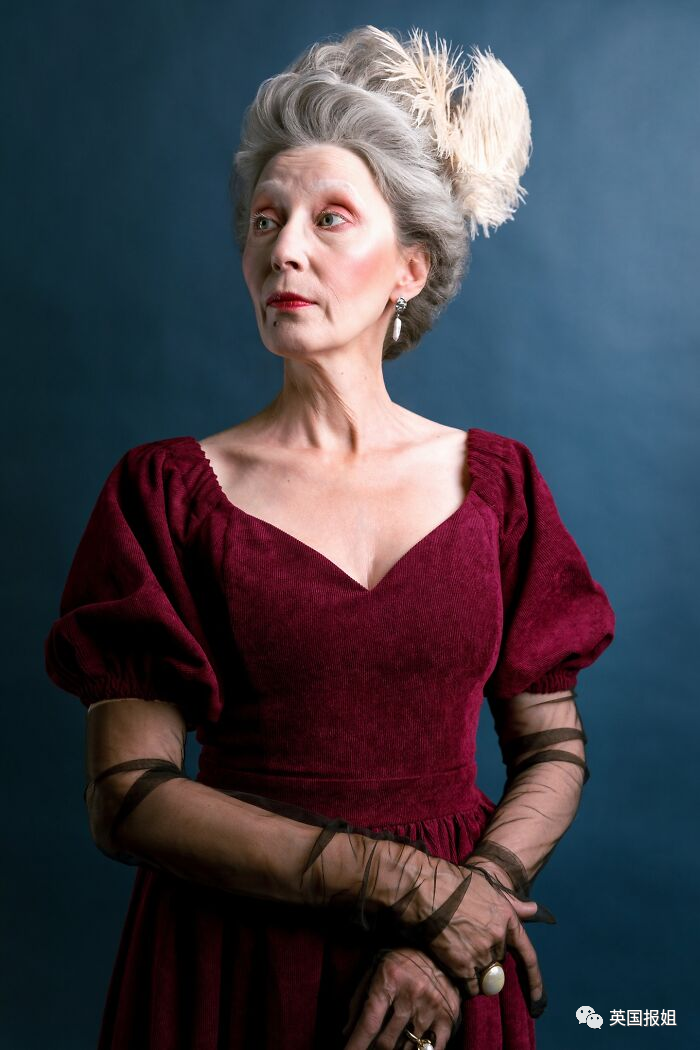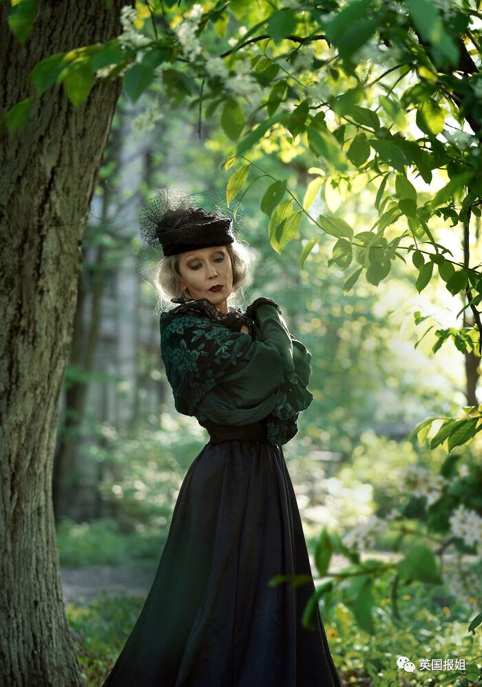 很多人可能会觉得阿姨的衣服是从剧院的更衣室借来的,或者本来是为拍摄电影而制作的道具服。但真相是,阿姨为自己缝制了所有服装。