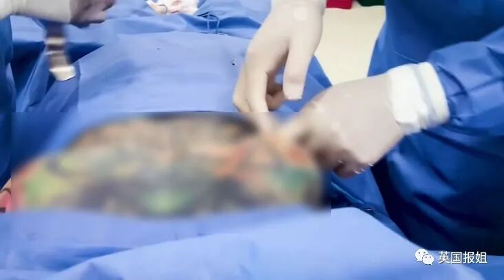 从胸下割开皮肤,用这种弯弯的刀把皮肤撑起来。