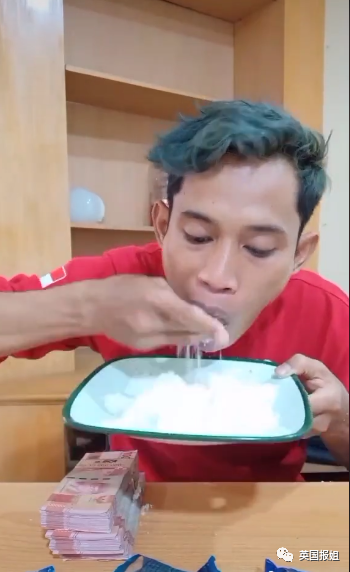 (印尼网红为了8500元的赏金,空口吃4袋盐)