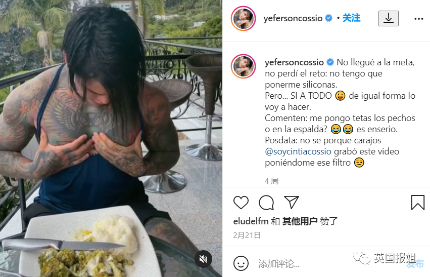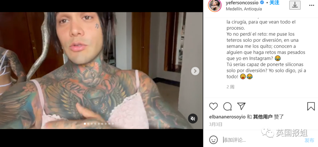 这位狠人叫做yefersoncossio,耶弗森·科西奥,在哥伦比亚还算是一个稍微有一点名气的小网红。