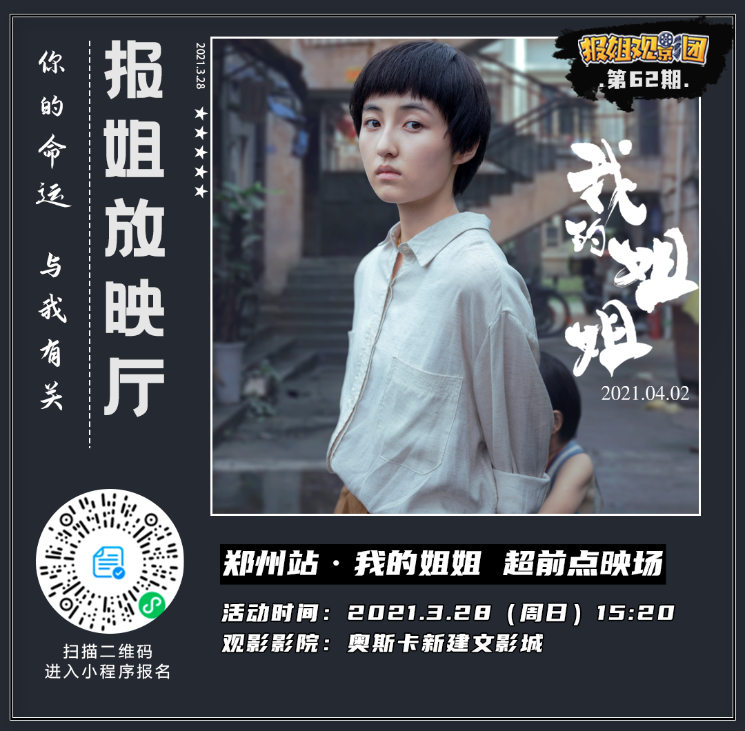#报姐观影团#要来【郑州】啦!3月28日,我们将提前带大家看由张子枫、肖央等主演的电影《我的姐姐》。