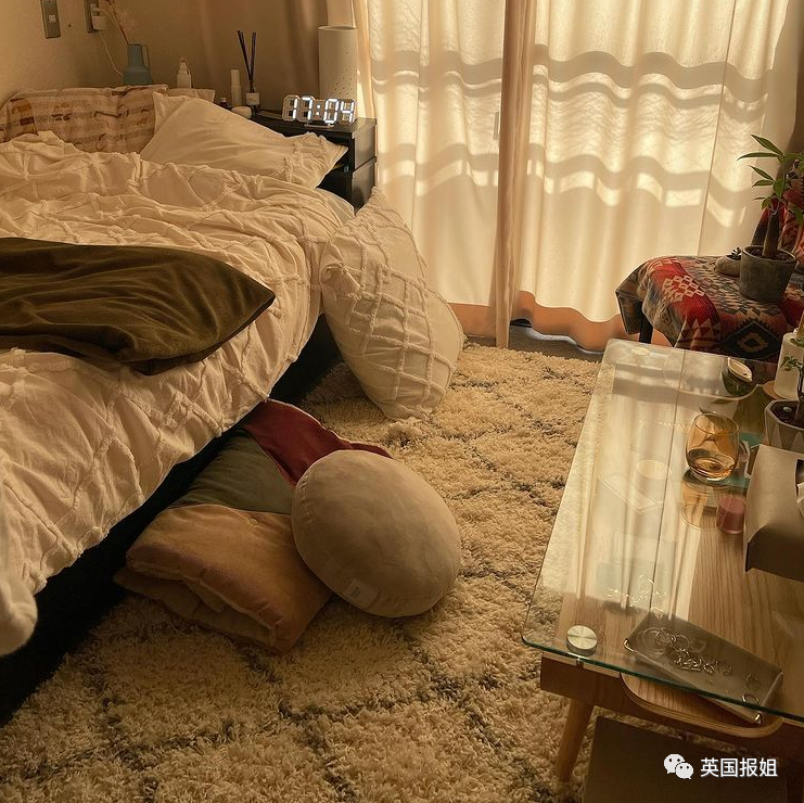 有人喜欢在房间里营造温暖感,阴天时的一盏小灯、晴天时透过窗帘的稀薄光线也足够把情调拉满。