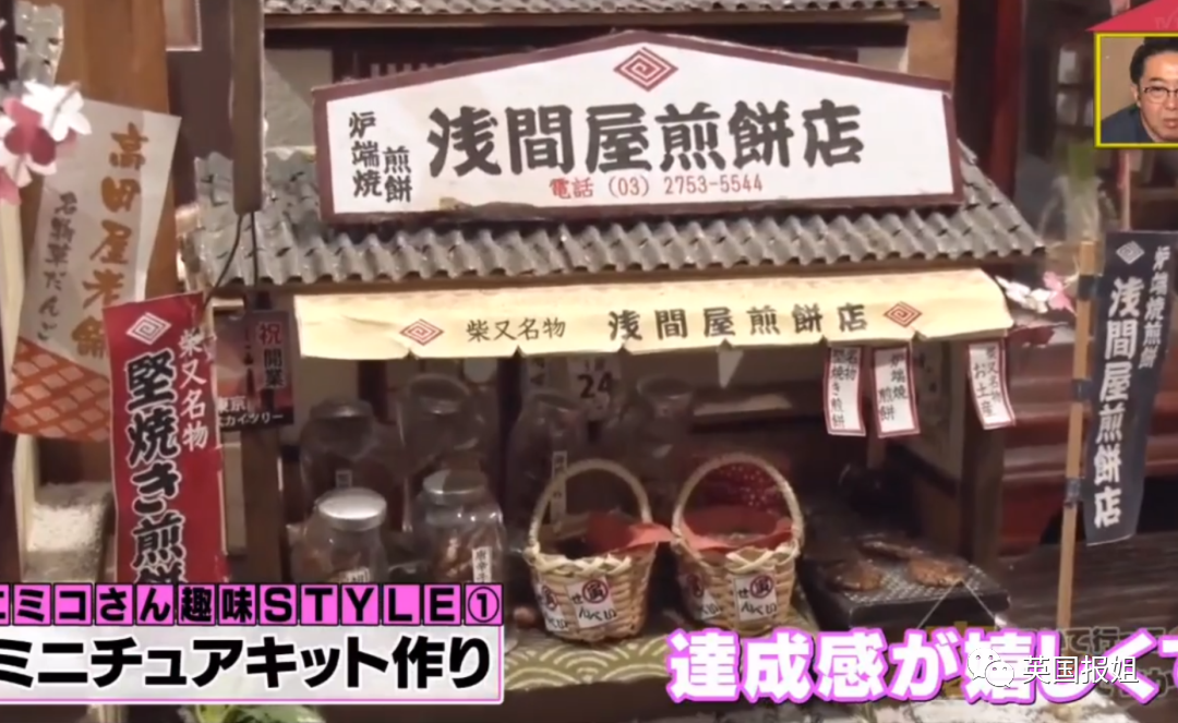 煎饼店、烤串店、拉面店...虽然都有拼装的模板,但是上色这一步是奶奶独自完成的。微型的食物、招牌、小道具全都做得栩栩如生。