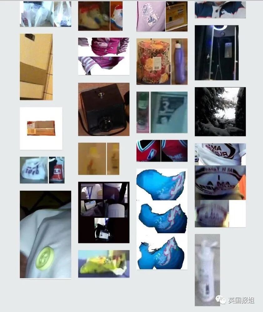 大多数图片是这样的:受害者的衣服、视频里出现的产品、不知所踪的场景等等