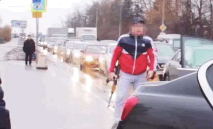 闹事车主秒怂,迅速回到车里。俄罗斯路怒真是道高一尺魔高一丈。