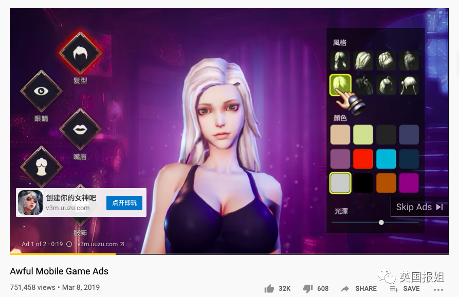 就是这么一个游戏广告,在youtube上面有几百万的播放量。甚至有人做出了所有的合集,这些三十秒不到的小广告组合在了一起,竟然有一种大片的既视感。