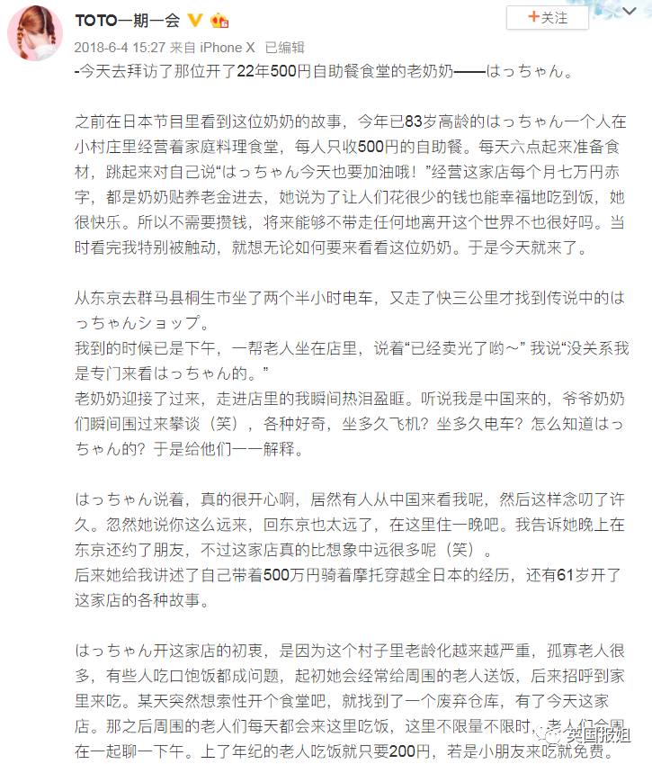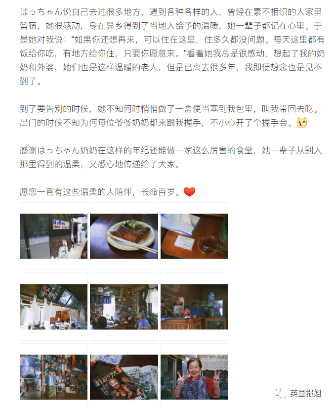 比如说,只要奶奶看到有小学6年级以下的孩子进店,白吃白喝完全免费;听到客人们是听说了奶奶的故事后远道而来,一顿饭也算是奶奶请的。