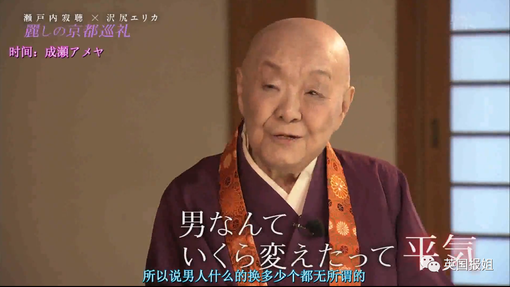 很多人可能觉得,寂听出家后会开始谨慎言行,然而事实上,除了不碰男色,她依旧还是那个她。