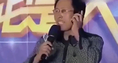 再看看这位戴着耳机、拿着手机上台的,这状态像极了我们在家用手机软件录歌的模样。