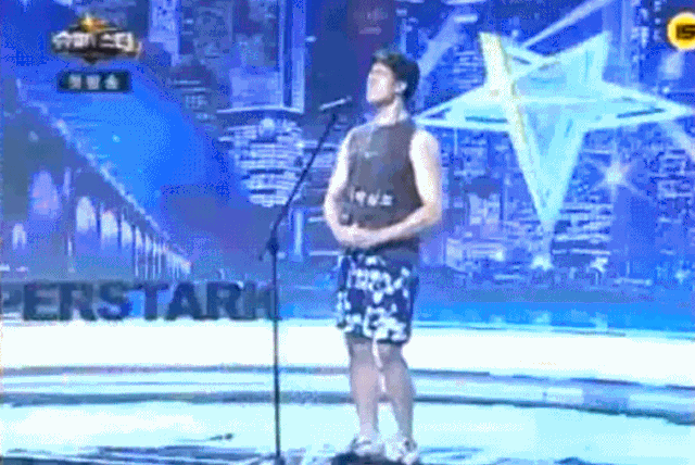 还有全程撕裂式唱歌,声音听起来让人怀疑有一口痰卡在嗓子里,沉浸自创舞步如入无人之境,最后趴倒在地来了个谢幕pose。