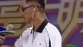 陶醉在自己的世界里,以至于已经结束了还不知道,主持人在旁边说“大哥,哎呀,好了,踩我脚了……你的话筒已经不响了”,他仍然不知道,以为主持人是来给他换话筒的。